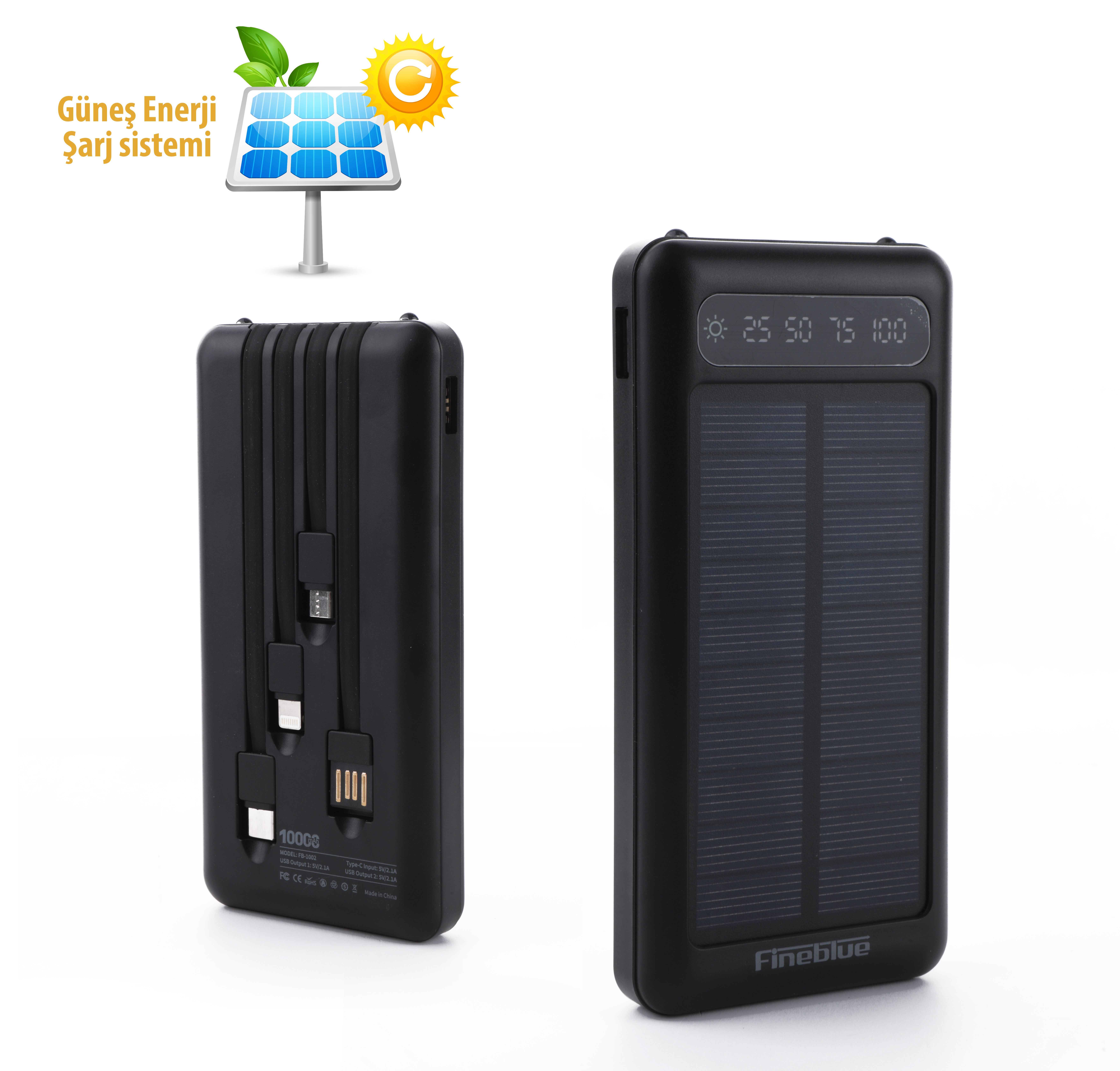 Fineblue FB-1002 Güneş Enerjili Powerbank – 10000 mAh Doğadan Gücünü Al, Enerjini Hiç Kaybetme!