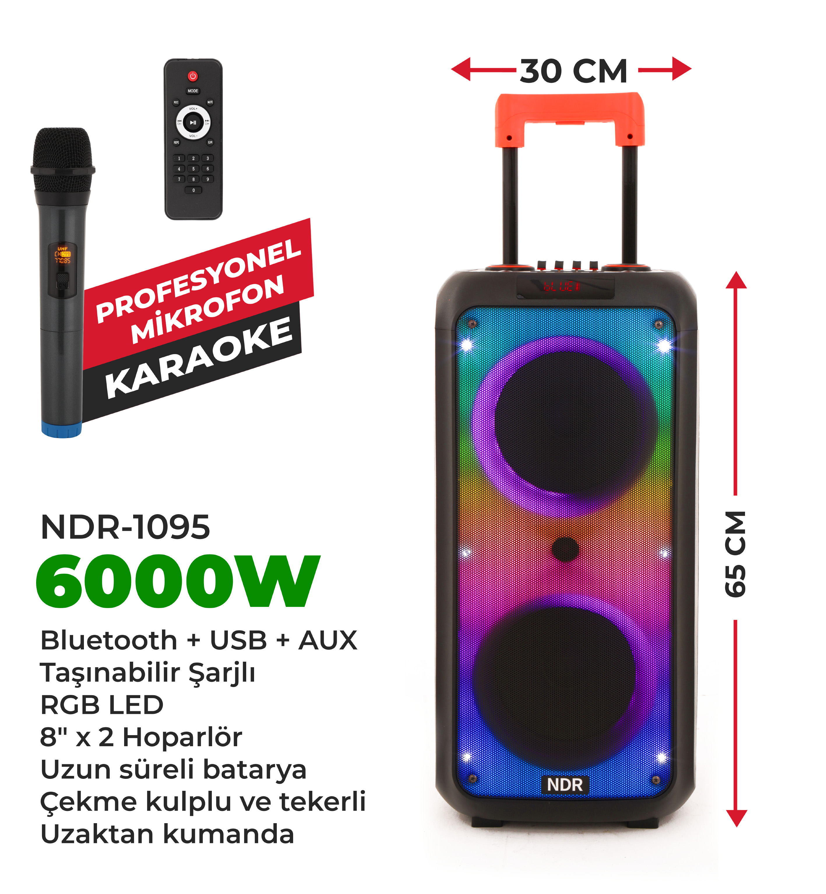 NDR–1095 ŞARJLI BLUETOOTH KARAOKE SES SİSTEMİ